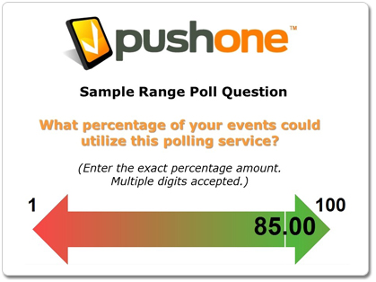 Range polling is available for questions that you want the audience to select a number within a given range. When you click or touch the "select 1-x" button, you get a pull down list of the choices. You simply touch or click your choice within the range and the number you selected is confirmed with received at the top. The range can be from 0 to 100.